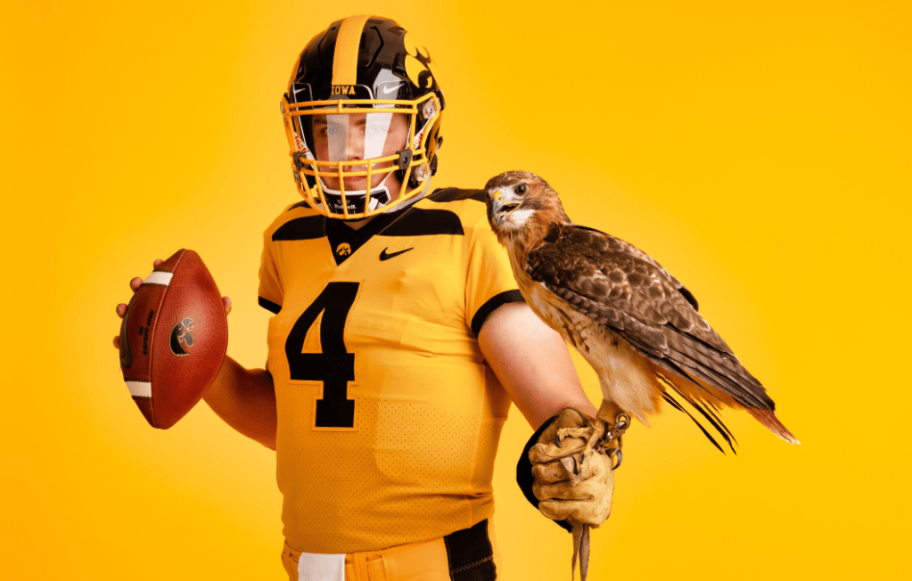 Some disliked these bright gold uniforms, but you can’t deny they made a statement. These iconic uniforms paid homage to Iowa’s “banana peel” uniforms of yesteryear. Perhaps these vibrant uniforms are most remembered for the live eagle featured in the announcement photo shoot.