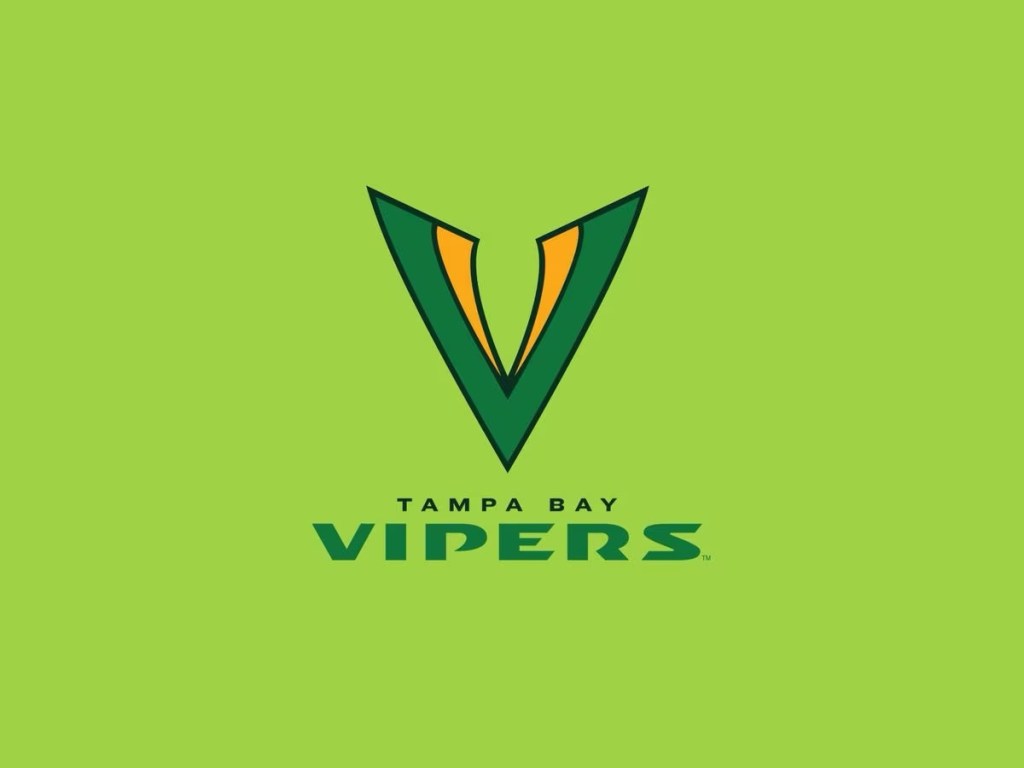 The Vegas Vipers logo was perhaps the worst recipient of the “tech / modern logo” treatment. Snakes are cool – just make it a dang snake! this looks more like a car logo than anything. Well, there’s one thing you can say about it – it’s better than the old Tampa Bay Vipers primary logo.