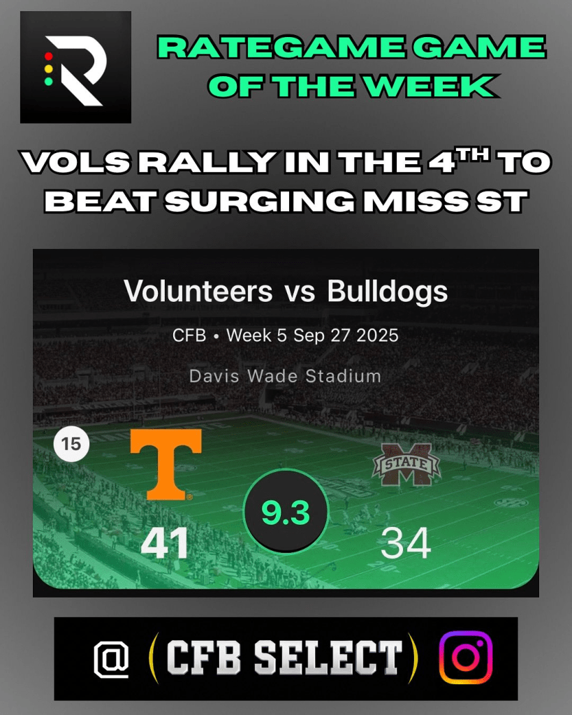 Week 5: Tennessee Rallies in the 4th to Beat a Surging Mississippi State